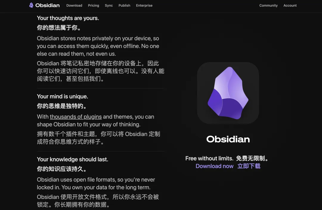 首先要知道,Obsidian 这款软件,主打的理念就是“本地优先,隐私至上”,所以它没有像 Notion 那样,开发官方内置的 AI 功能。
