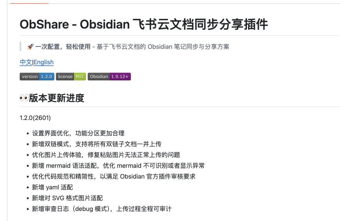 其实通过 ObShare 这款插件,你也一样可以将 Obsidian 的文章,一键同步到飞书文档上。这非常适合那些,习惯在飞书上做知识分享的用户。