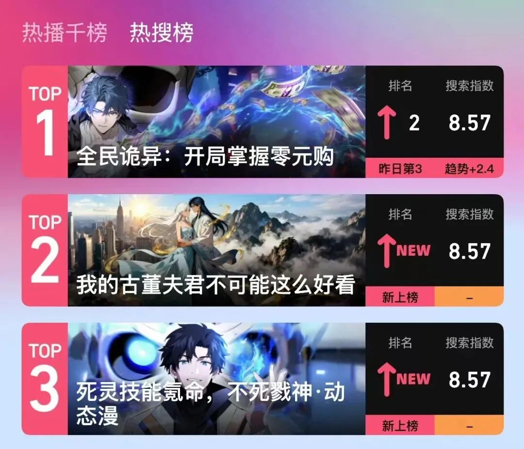 现在赛道里,字节靠流量,百度靠男性向,火龙漫剧如果只靠生态,很容易陷入同质化。或许可以走“全题材覆盖+IP衍生”的路线,既做男性喜欢的三幻题材,也做女性喜欢的甜宠题材,再靠IP衍生形成独特优势,和字节、百度形成差异化竞争。