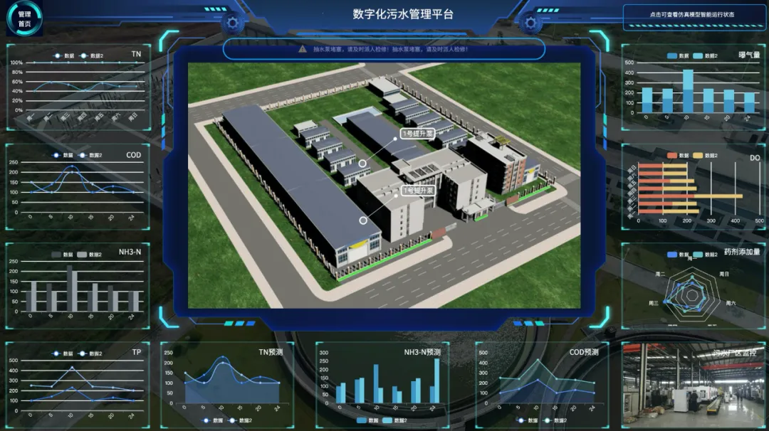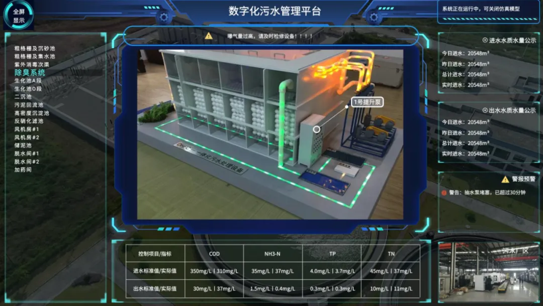 数字孪生技术通过三维重建和仿真模拟,能够精确还原污水处理过程中的各种变量和情景,将复杂的生产过程可视化,并以直观的方式呈现给决策者和运营团队。