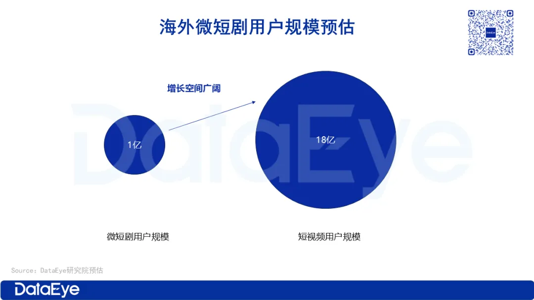 DataEye研究院预估:当前海外微短剧月活跃用户规模约1亿。相较于全球短视频18亿的用户体量,海外微短剧的用户规模仍存在极大的增长空间,市场潜力亟待挖掘。