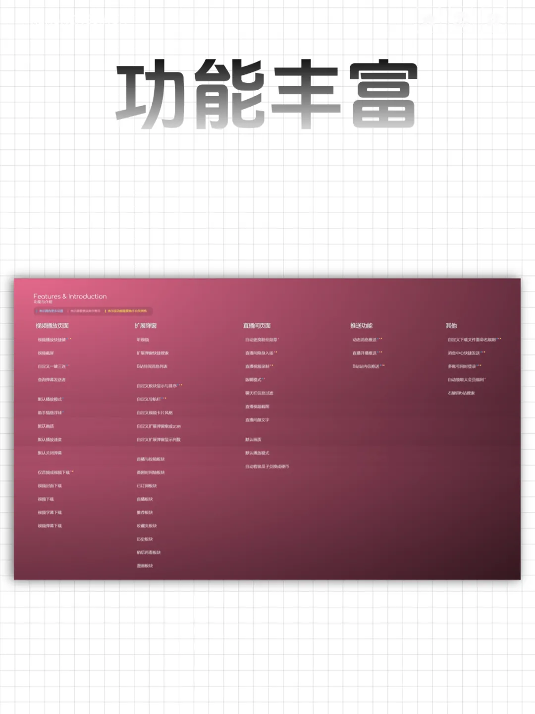 ACG助手这个插件的功能非常丰富,不止视频下载这个功能,还能查询弹幕发送者,过滤直播间聊天栏信息和自动领取大会员福利等。