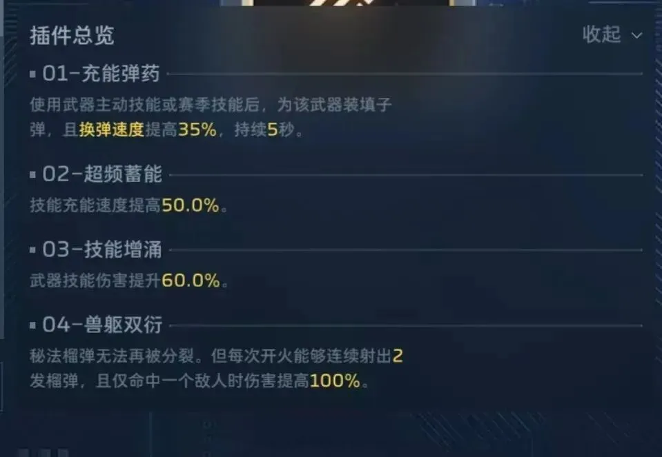 这套插件榴弹差不多5秒一个,天赋带行境幻化,开技能可以增加100%回能,差不多相当于4发榴弹,打boss直接右键榴弹砸就行,