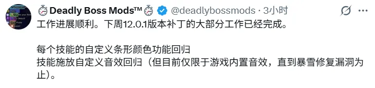 但现在不管插件还是职业平衡,喷的人都太多。所以下周会提前让12.0.1版本在前夕上线。