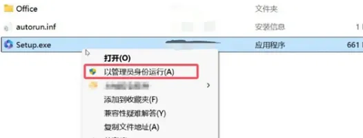 4,返回之前解压的文件夹,打开安装包文件夹,找到Setup.exe,鼠标右键,选择以管理员身份运行 。