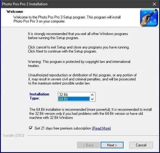 安装Photo Pos Pro 4非常简单。先下载安装包,解压后运行,根据你的系统选择对应位数。