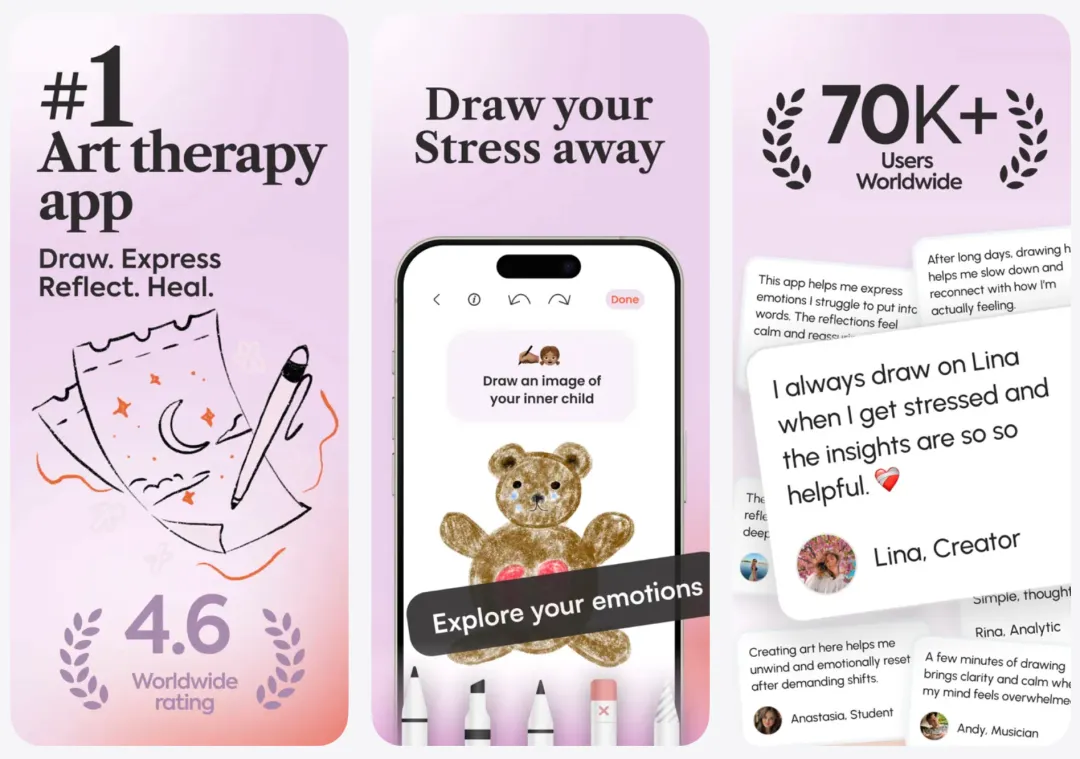 • 简介:一款温和而强大的艺术疗法应用,通过创造力帮助你处理情绪、缓解焦虑、重新与自我连接。