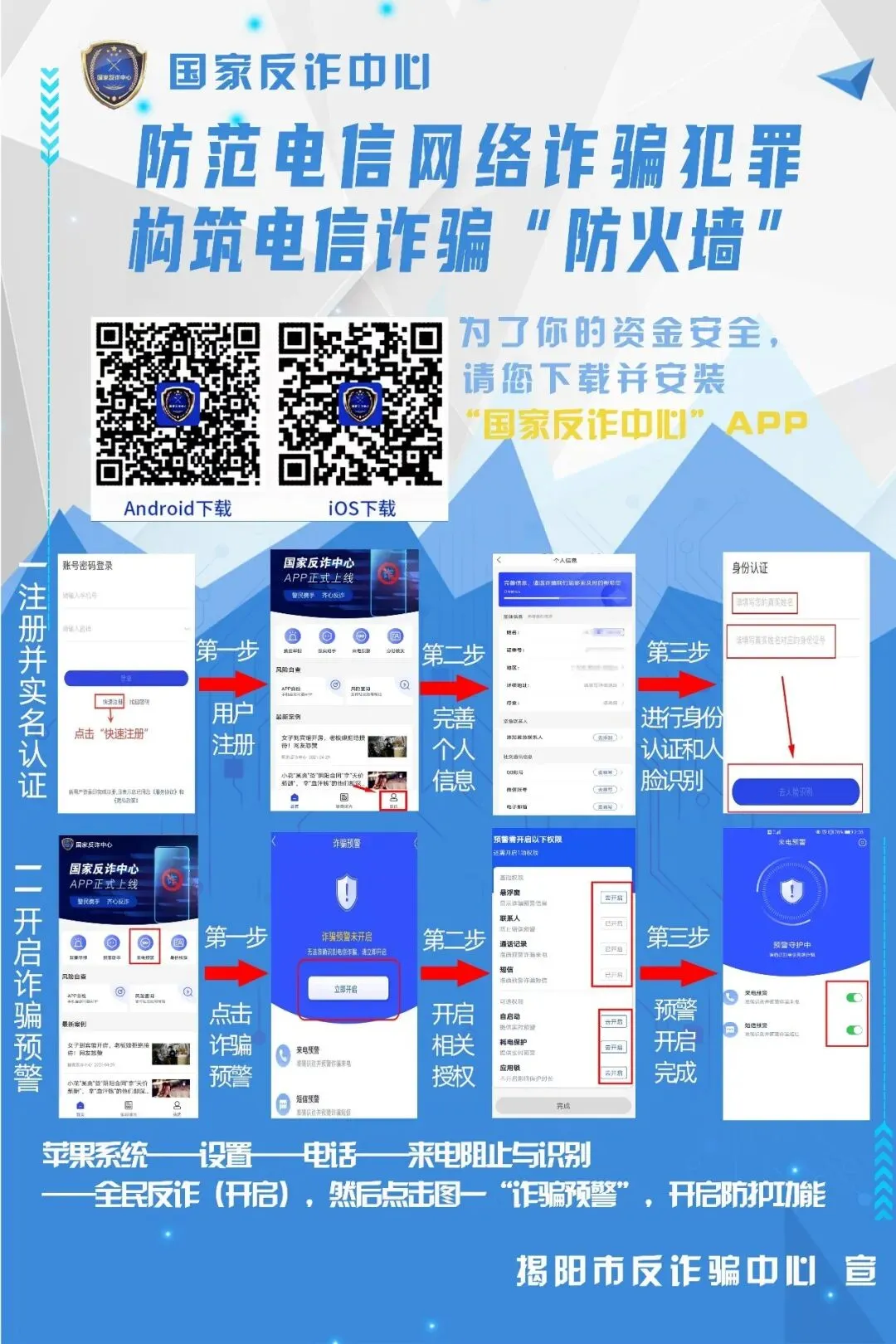 作为国家对电信诈骗“技术反制”的强有力措施:以公安大数据为支撑,研发出的“国家反诈中心”APP,就是守护广大市民财产安全的强有力保障。它既是信息平台,也是反诈工具。特别是其中的“反诈预警、身份验真、APP自查、风险查询”等核心功能,可以最大限度地减少被骗的可能性。