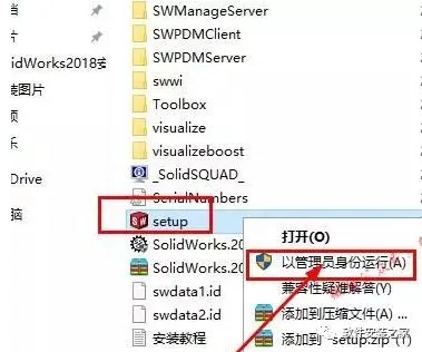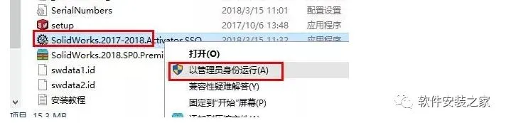 19. 打开解压后的文件夹,选择SolidWorks.2017-2018.Activator.鼠标右击“以管理员的身份运行”。
