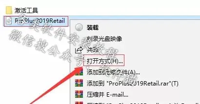3.选中【ProPlus2019Retail】镜像,鼠标右击选择【打开方式】。