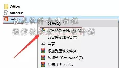 5.选中【Setup.exe】可执行文件,鼠标右击选择【以管理员身份运行】。