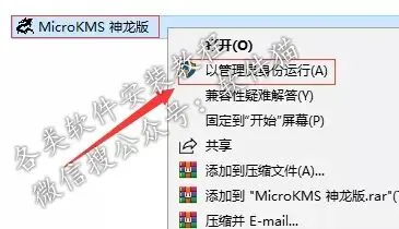 16.选中【MicroKMS 神龙版】文件,鼠标右击选择【以管理员身份运行】。