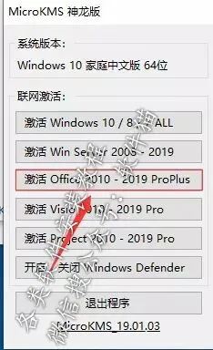 温馨提示:如果文件夹里面没有MicroKMS 神龙版或者打不开,请关闭电脑上的杀毒软件和防火墙(Win10系统还需关闭Defender)后重新解压安装包打开。