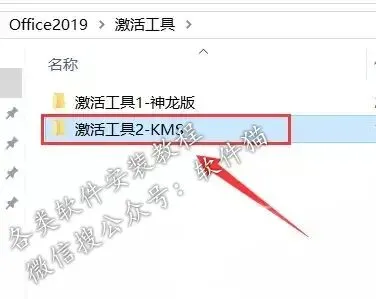 20.双击打开安装包解压后的【Office2019】文件夹里面的【激活工具】文件夹,然后双击打开【激活工具2-KMS】文件夹。