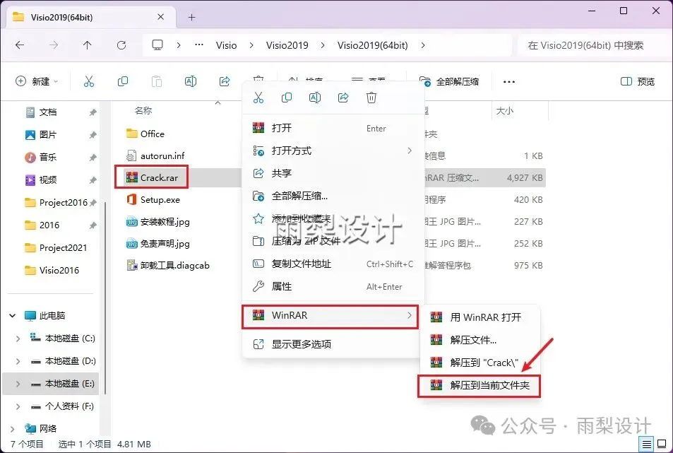 5.返回安装包;右键【Crack.rar】选择【解压到当前文件夹】