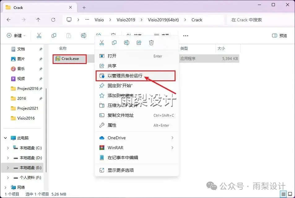 6.右键【Crack.exe】选择【以管理员身份运行】