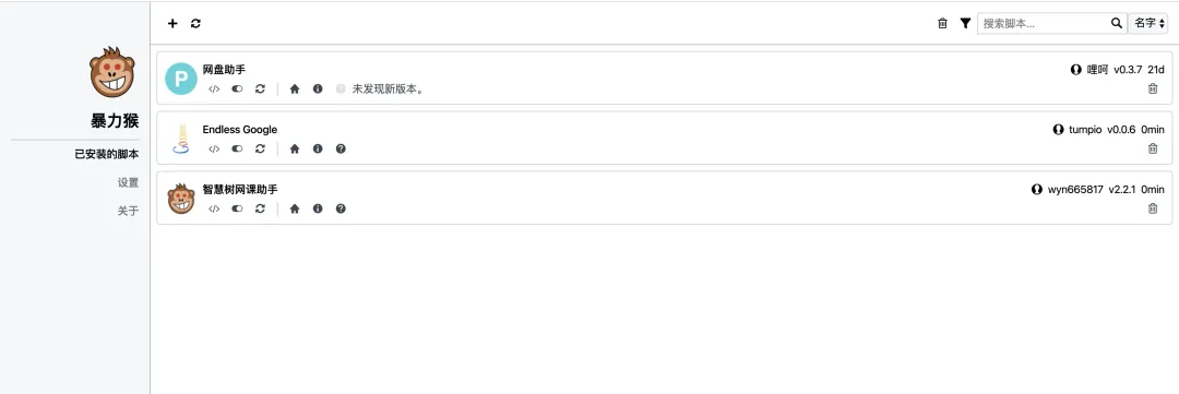 它界面非常简洁和方便,还可以直接搜索脚本添加,还支持通过地址一键安装。