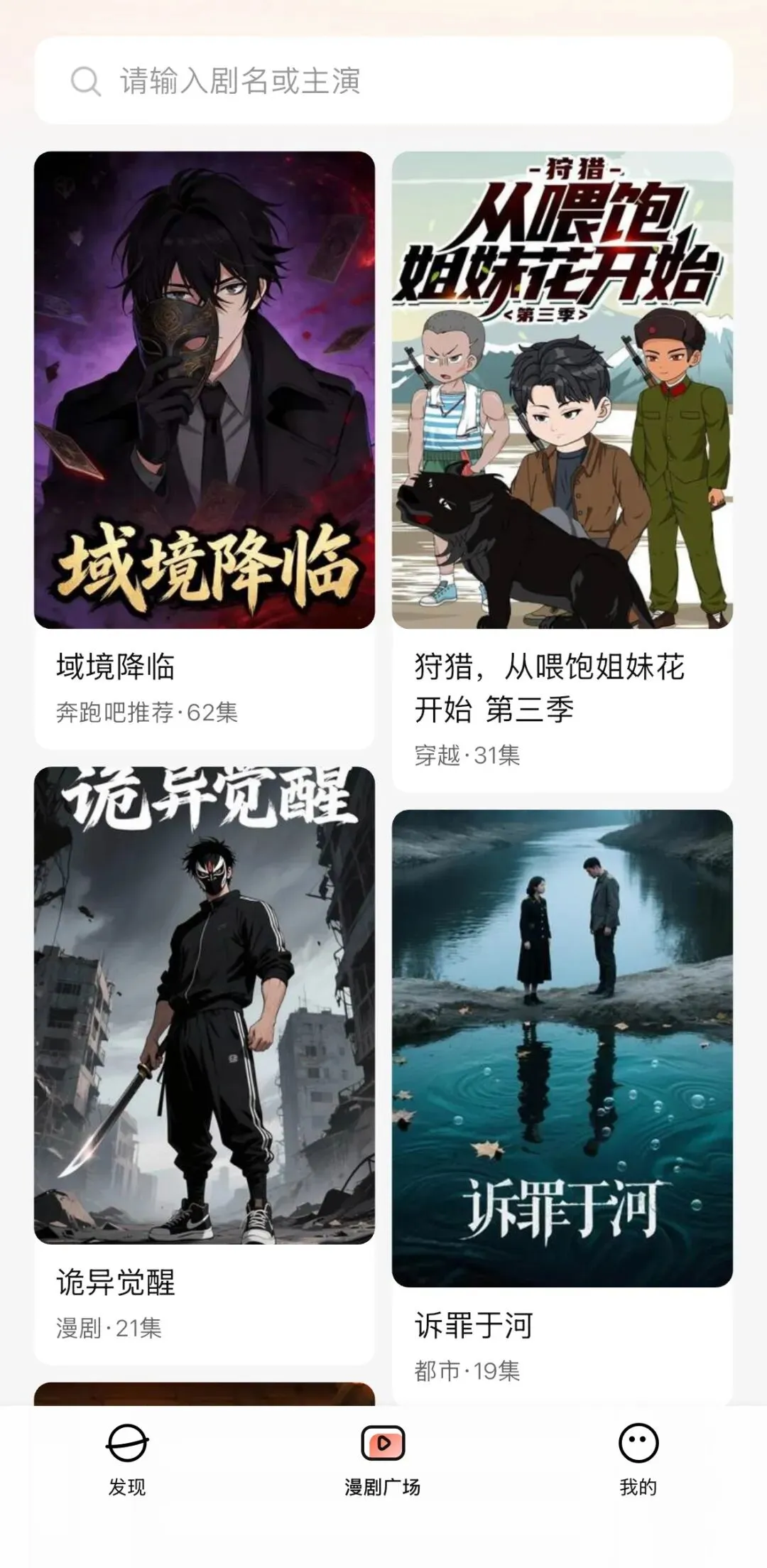 APP和柚漫剧反过来,走的是“极简风”。只有基础的信息流推荐、作品搜索页,没有分类,更没有榜单。