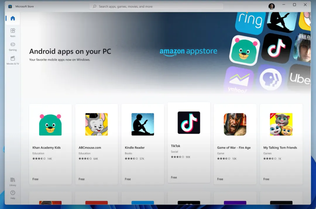 那么,Win11的新功能是否会如网友所说,取代模拟器?据微软CPO Panos Panay介绍,用户可以通过Win11内置的微软商店进入亚马逊应用商店,下载安卓应用到电脑上,然后直接通过Win11全新的“开始”键或任务栏快速访问。简单来说,就是你的Win11系统里,会自带安卓模拟器。