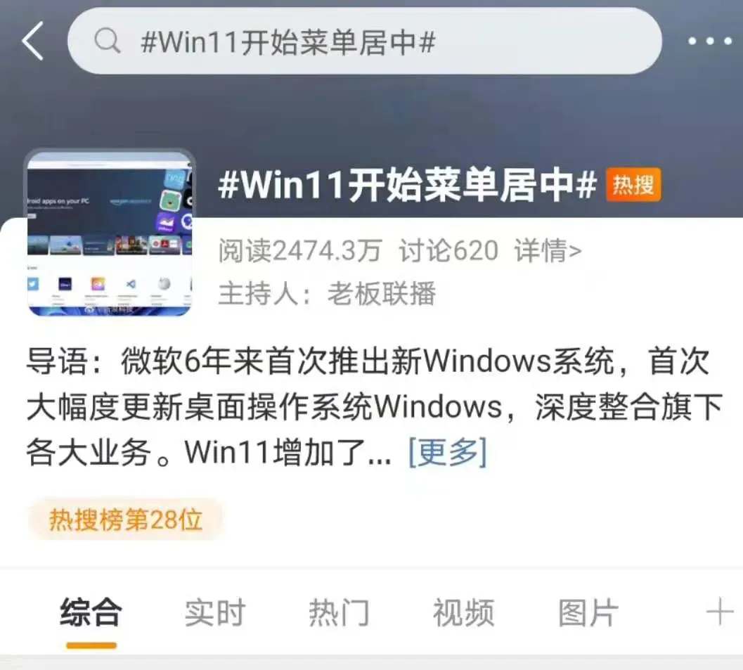 此外,本次的Win11系统还优化了界面设计和用户操作,用户可以在“开始”菜单快速访问之前浏览过的文件,其UI相关的话题还登上了微博热搜。