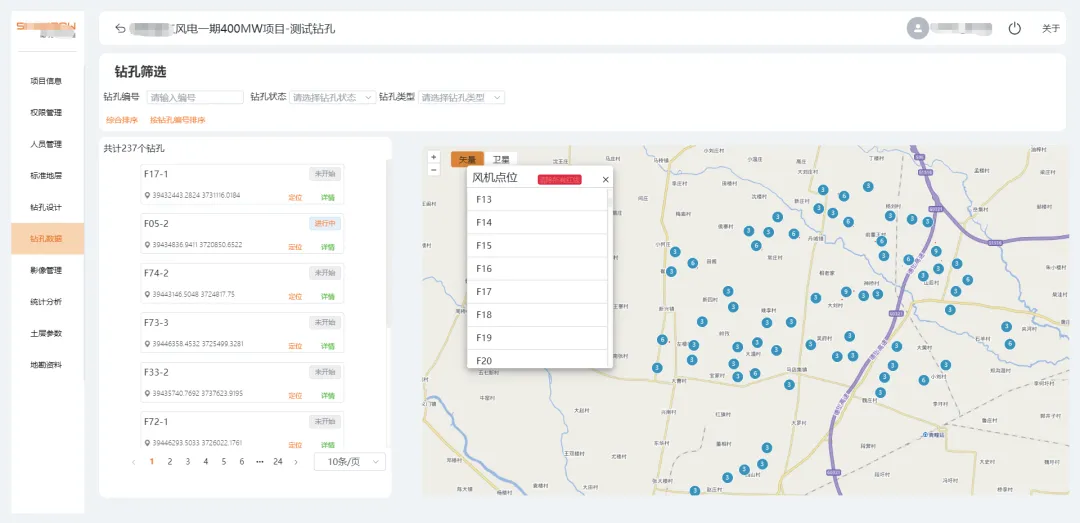 项目简介:系统是电力工程前期地质勘察全流程的智能化解决方案,集成地质调查、北斗探针测量、全类型勘探(含钻探、静探、原位测试、土工试验等)、数据管理等功能,可全面查明电力杆塔线路与变电站、升压站场地的地形地貌、水文气象、灾害风险、不良地质等环境条件,精准获取地层分层、物理力学性质及钢筋混凝土腐蚀性等数据,最终通过智能化处理生成符合规范的勘察报告与成果文件,为岩土设计人员开展设施基础设计提供完整数据支撑。