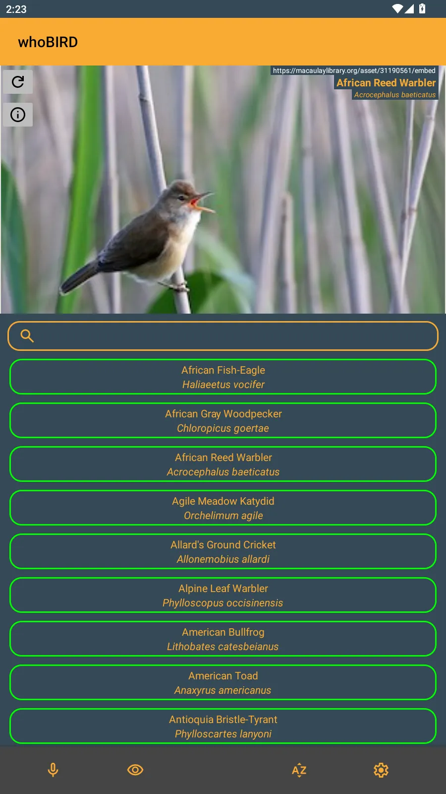 6、whoBIRD(鸟类鸣声识别工具)