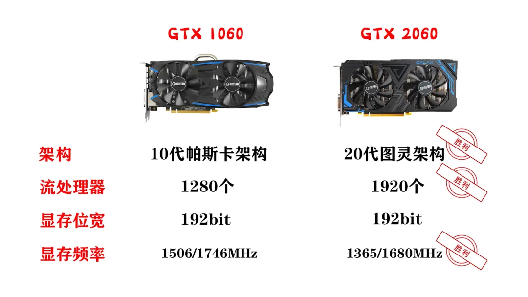 10代1060和20代2060,2060是较新的图灵架构,从流处理器、位宽、频率,同6GB的显存,GTX1060被全方吊打!
