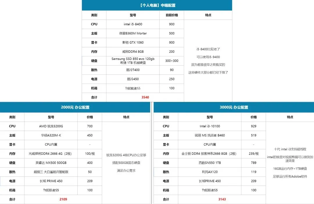 i5-8400+GTX1060独立显卡,中等配置水平,能够完美舒畅运行所有Adobe软件,在给大家推荐2套高性价比配置!