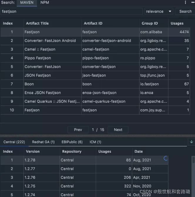 这款插件,就无需你来回跳转,直接把中央仓库的查找集成到了Idea里面。你只需要打开这款插件,输入jar包的名字或者gav关键字,就能查到到这个jar包所有的版本,然后可以直接复制gav坐标。方便又快捷,干净又卫生!