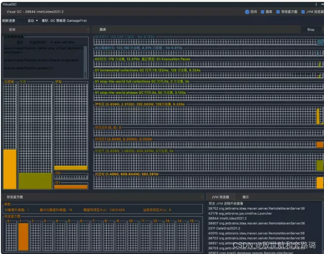 Idea堆栈的可视化工具,和Idea深度集成。直接显示所有进程,双击即可打开JVM的堆栈可视化界面。堆栈和垃圾收集情况一目了然!