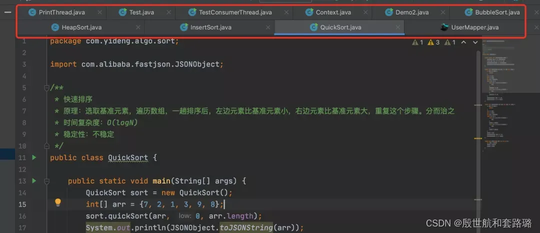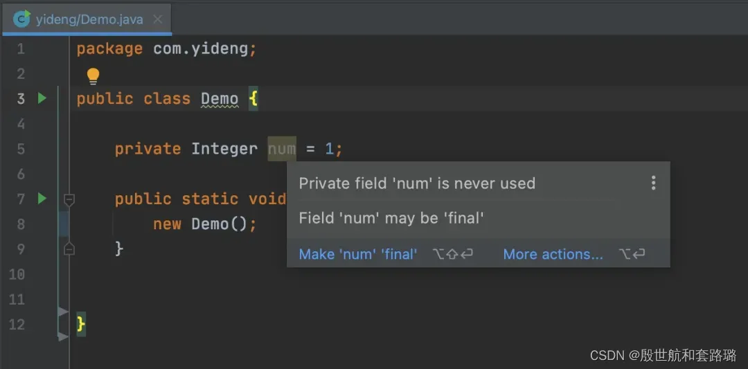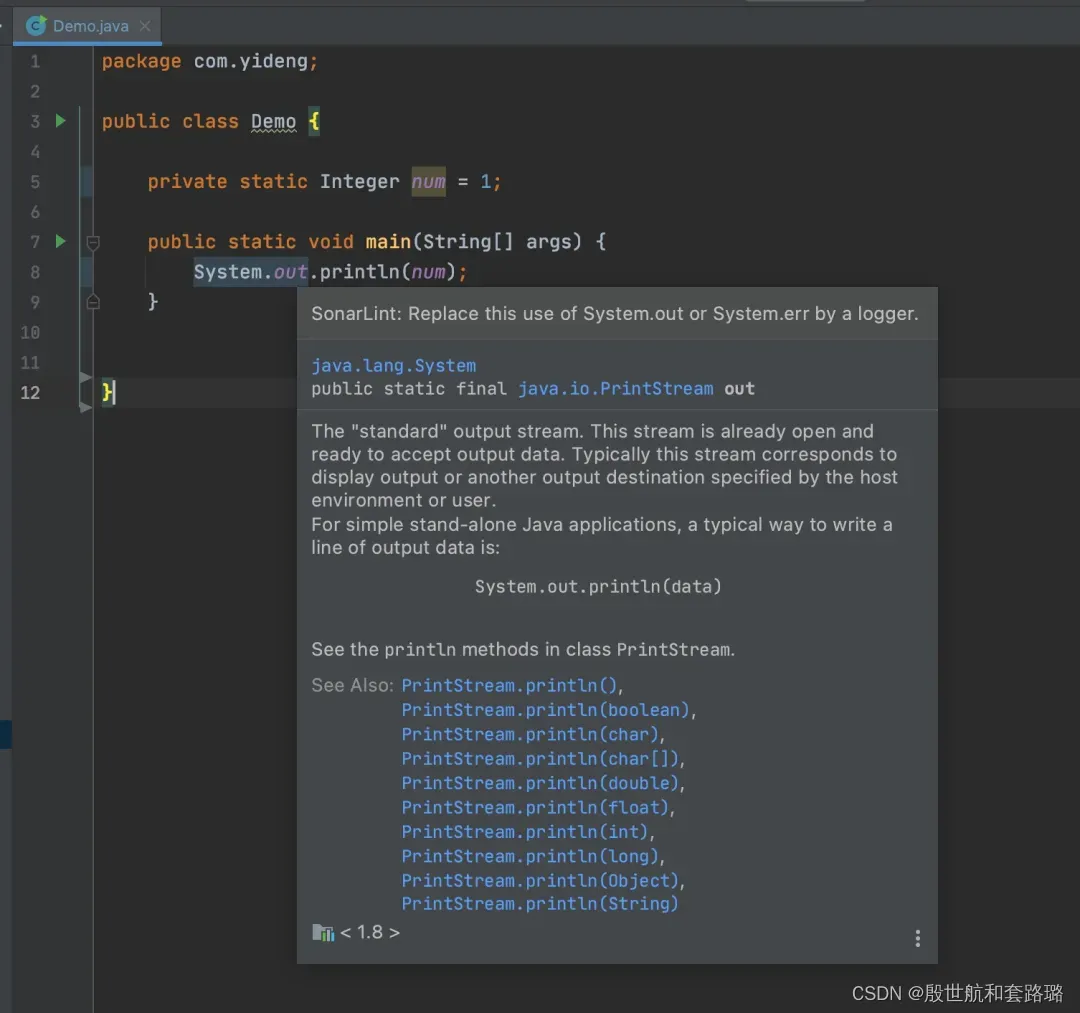 会按照阿里Java开发手册上规范帮我们检查代码,然后对代码做不同颜色展示,鼠标放上去,会看到提示内容,帮助我们写出更规范的代码。