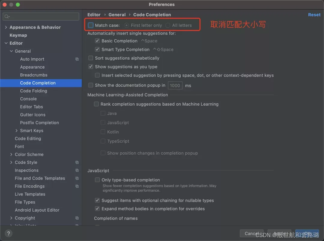取消勾选后,输入小写 s ,也能提示出 String