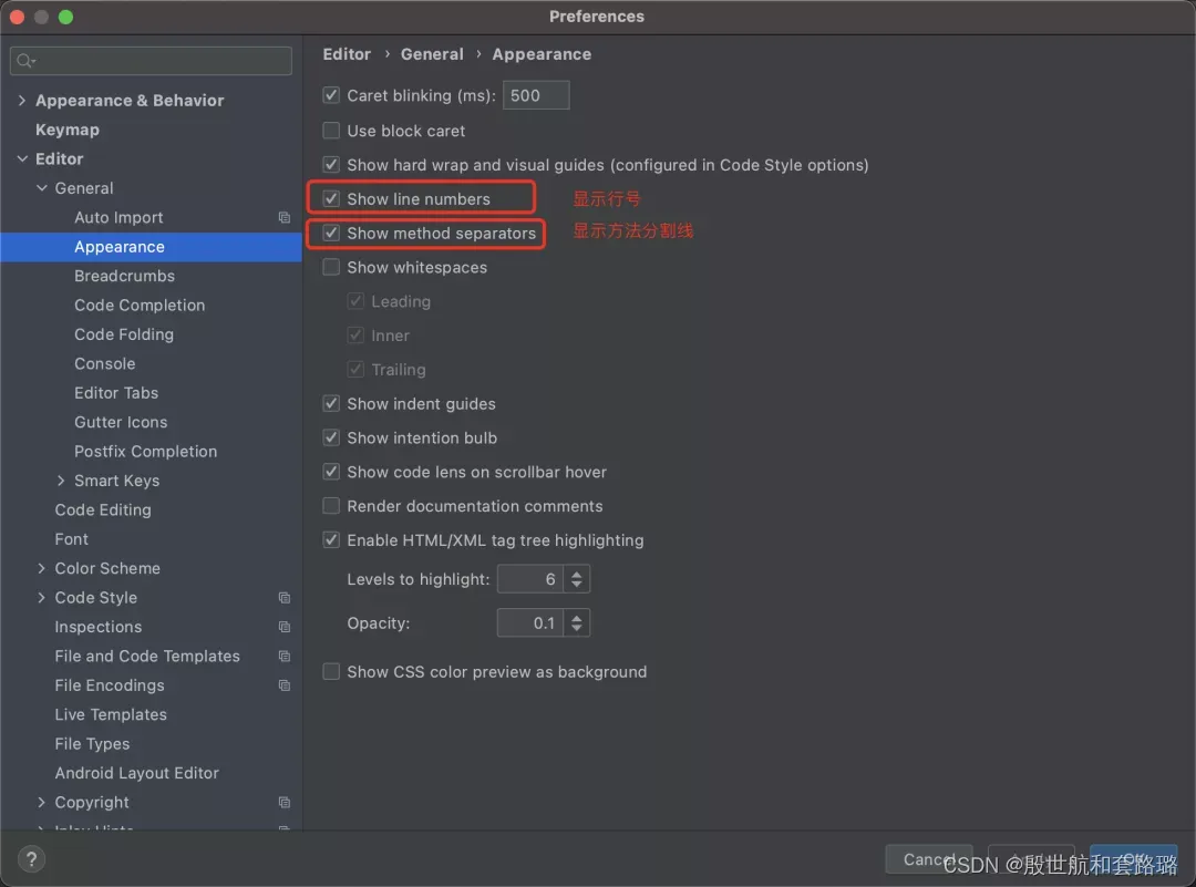 9.显示行号和方法分割线
