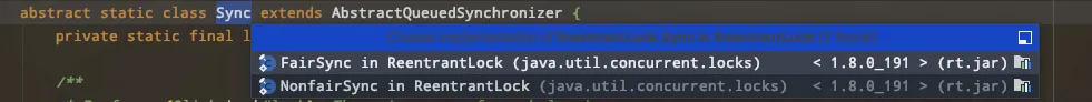 其实公平锁的实现FairSync的tryAcquire与非公平实现NonfairSync的区别仅仅在于一行代码: