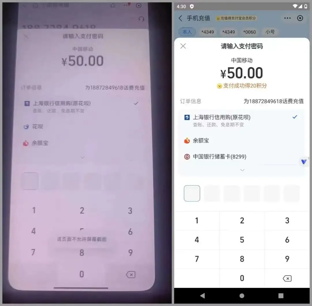 重点提醒:支付宝的付款界面是不能截图,你试试就明显知道了。