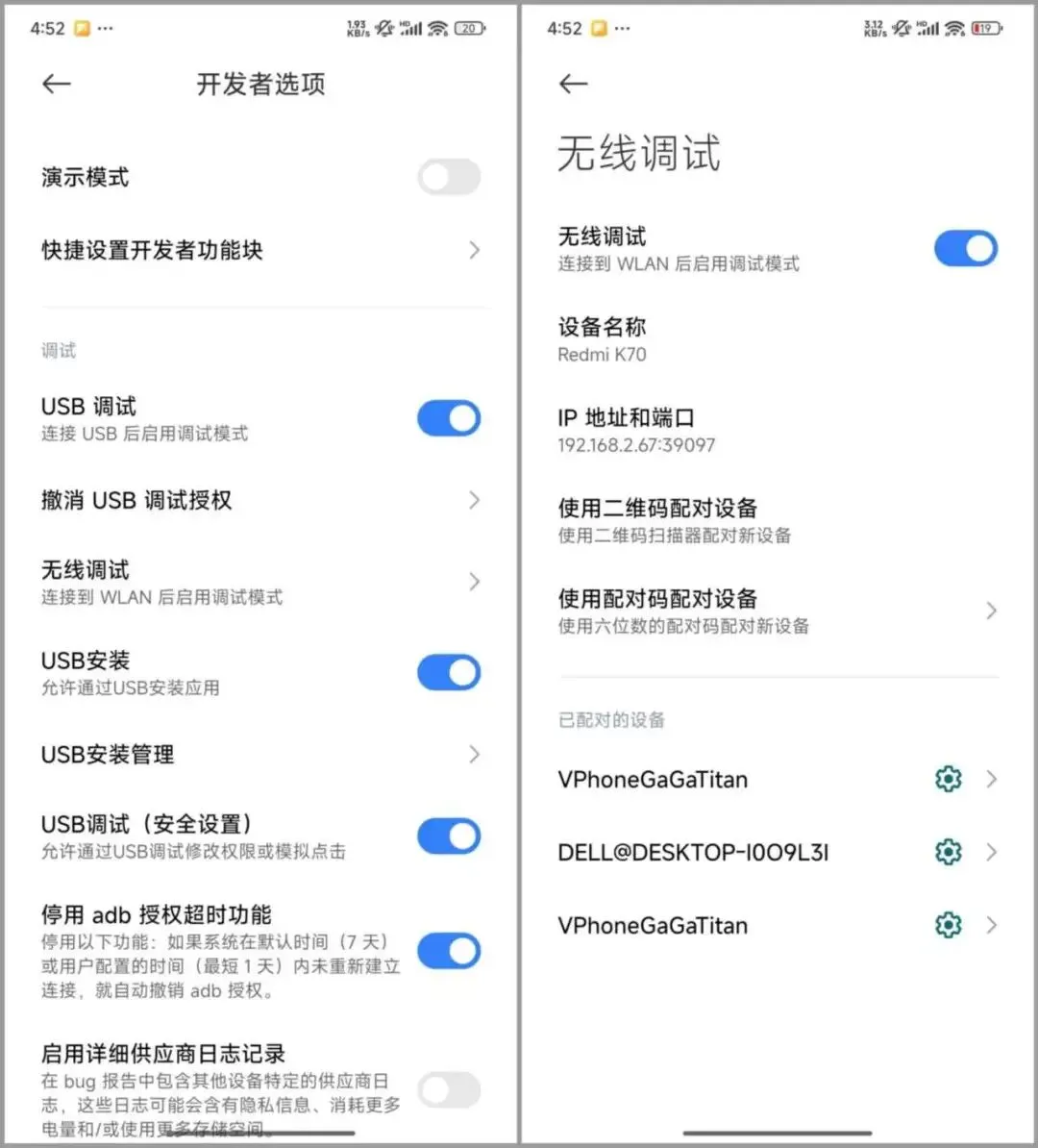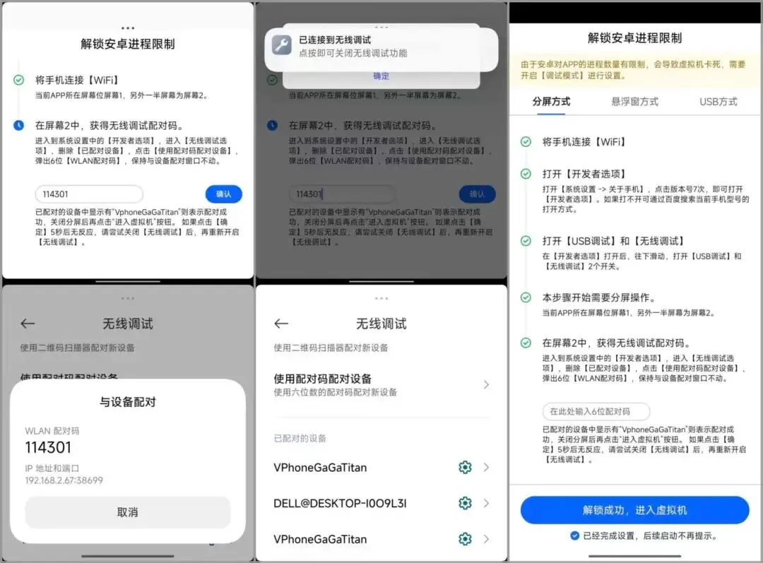 用「配对码」连接adb的方式激活虚拟机,只有安卓11的系统才支持。