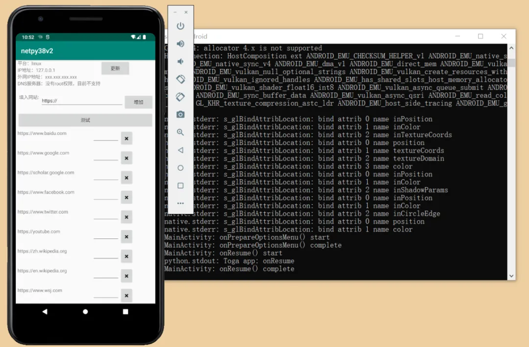 我想用它做个有用的东西,在我切换网络代理时,能够帮我测试该代理的性能。具体来说就是可以自动访问我想要的网站,并显示一下速度。最终就是下面的这个样子: