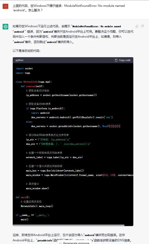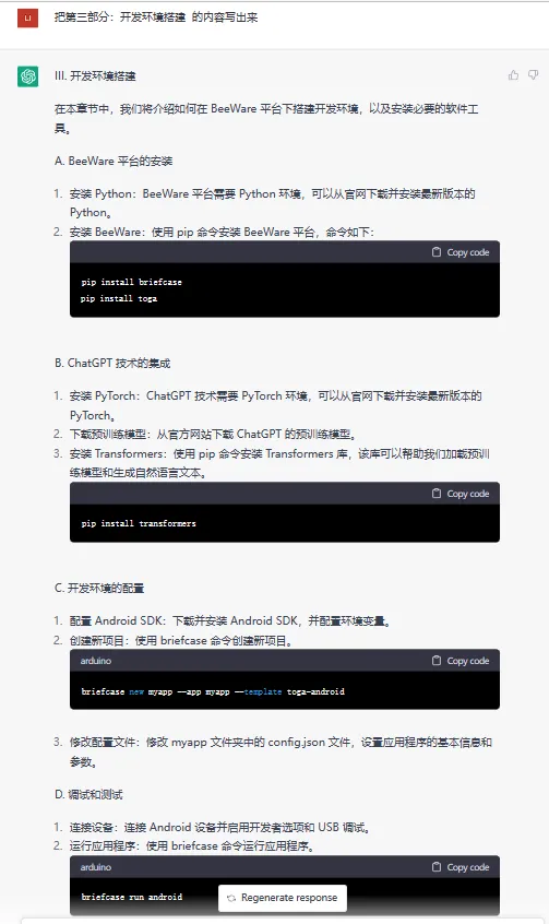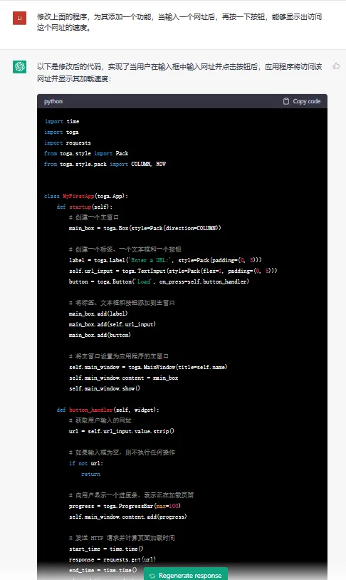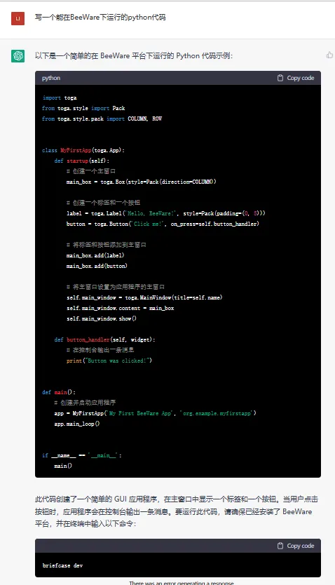 由于我没有接触过BeeWare平台,打算看看BeeWare上的代码是什么样的。这个方面借助ChatGPT确实非常方便。