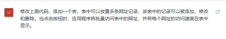 我需要的是批量测试网站,我想用一个表格的UI组件去管理。于是,我又给ChatGPT下达了新的任务。