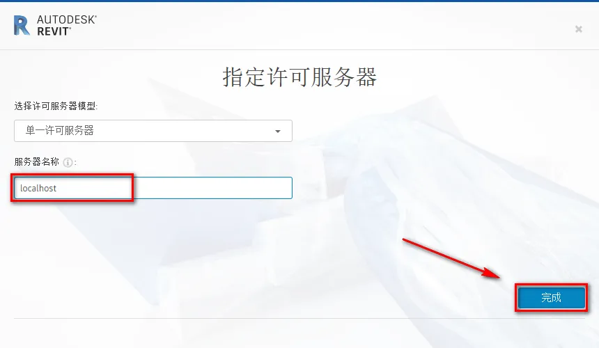 13.服务器名称栏,输入:localhost,点击“完成”