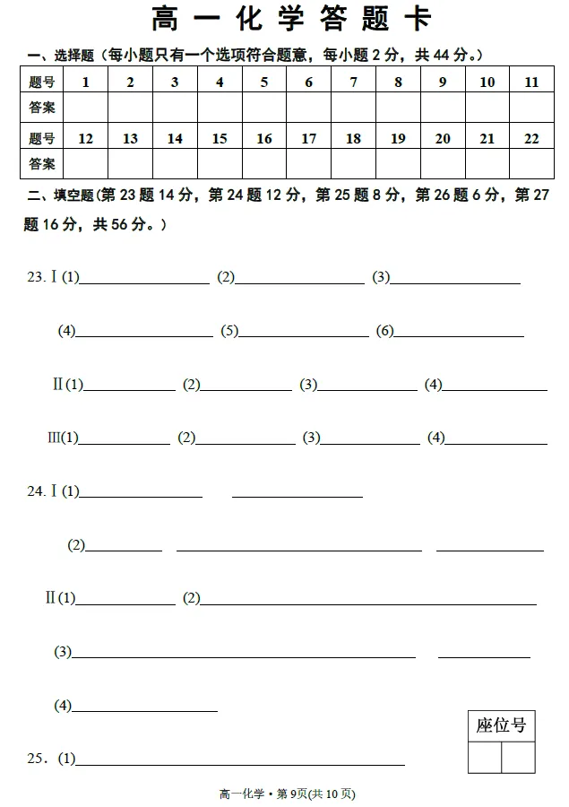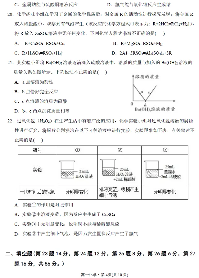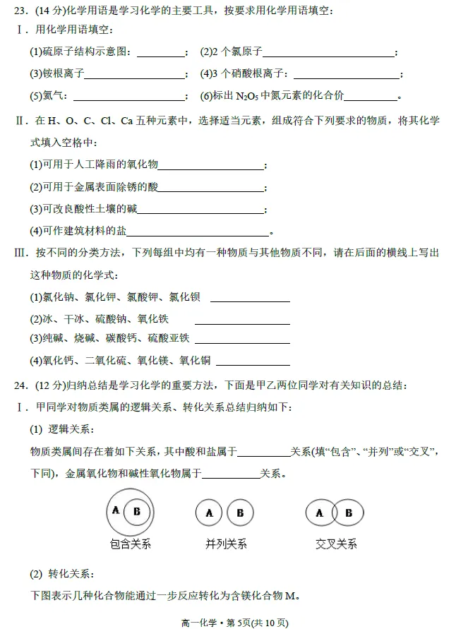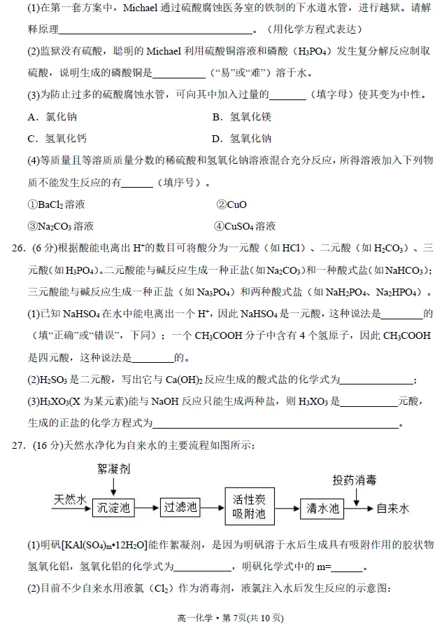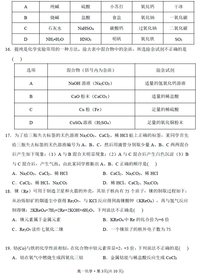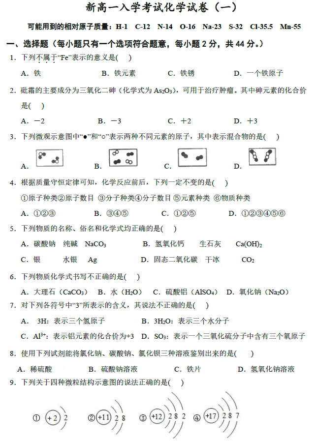 新高一入学考试精品化学试卷(一)!附文档下载