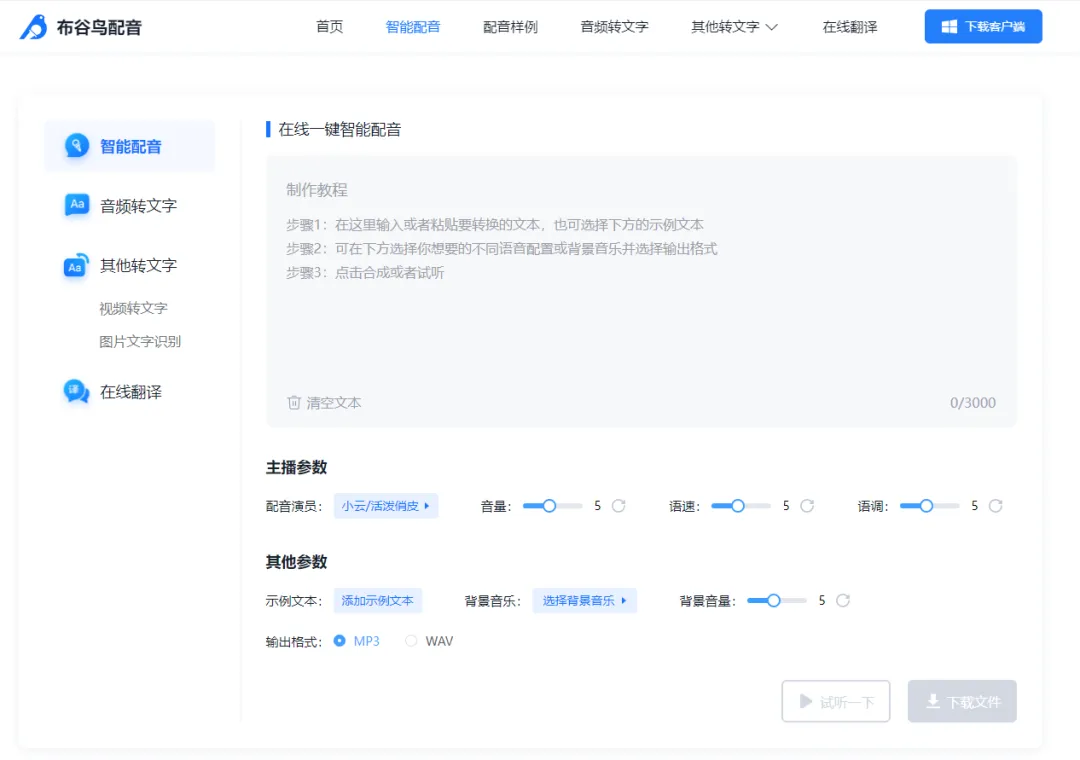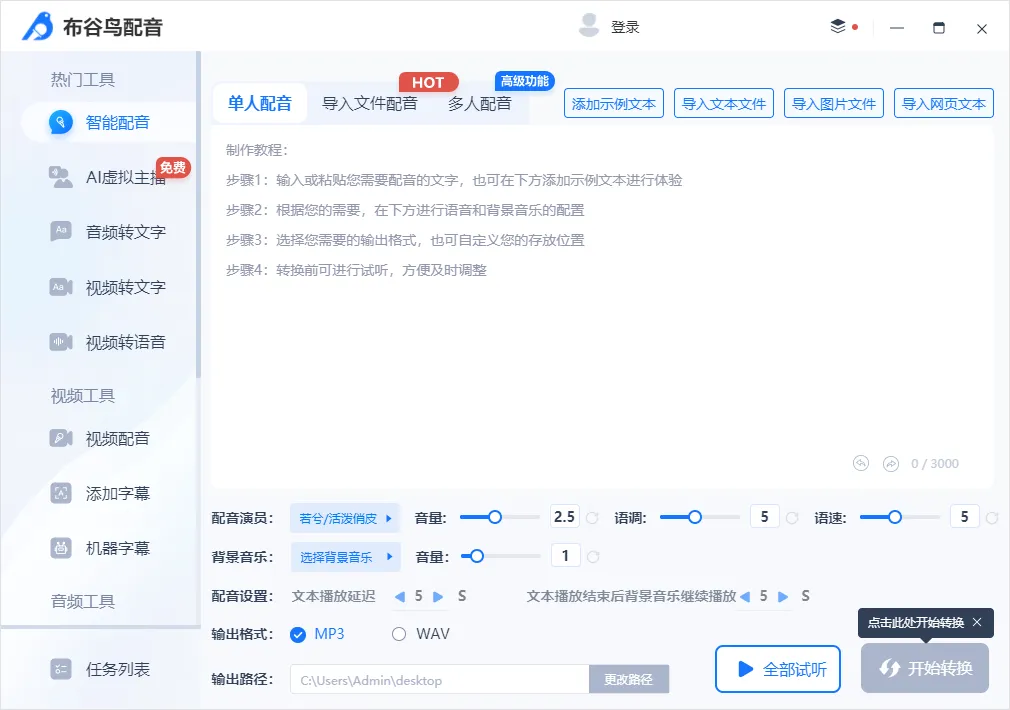 “布谷鸟配音”的界面简洁直观,操作简单易上手,即使是没有配音经验的小伙伴也能轻松使用,不想在电脑上下载的话可以直接打开它的网页端口操作使用