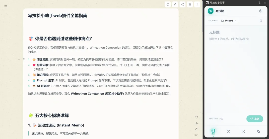 如果这些场景让你感同身受,那么 Writeathon Companion (写拉松小助手) 就是为你量身定制的生产力瑞士军刀。