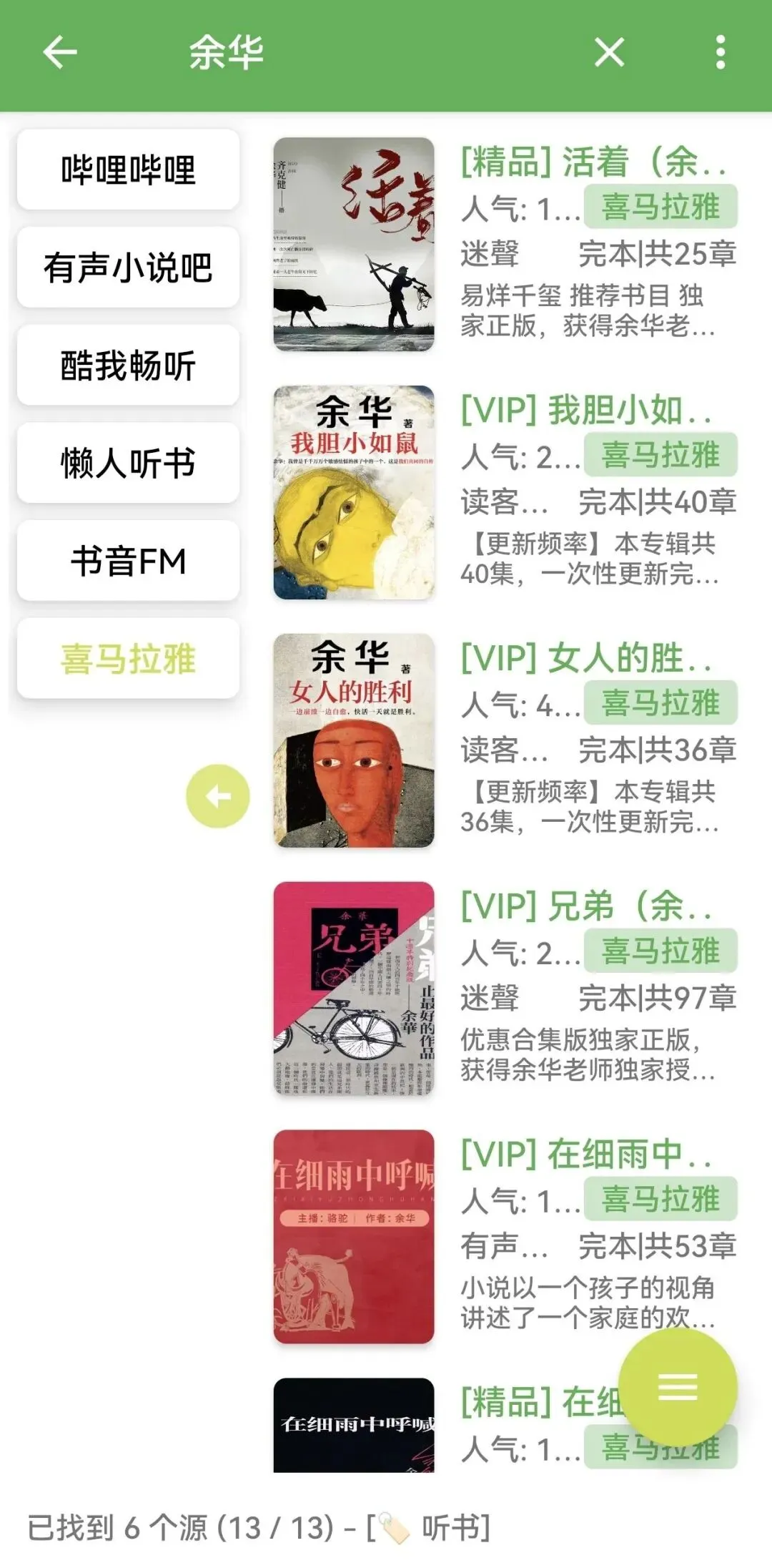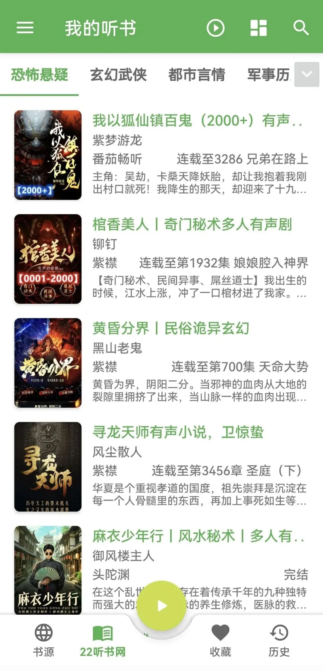 这款APP堪称听书界的“资源百宝箱”,直接整合了幻听网、懒人听书、喜马拉雅、酷我听书等数十个主流听书站点资源。打开软件你会发现,从22听书网热度超425万的《棺香美人》,到博看有声评分5星的文化类内容,再到单田芳评书网的经典评书、哔哩哔哩的趣味有声小说,甚至宝宝童话故事、新东方英语课程,近百种品类、海量资源都能一键获取,再也不用在多个APP间反复切换。