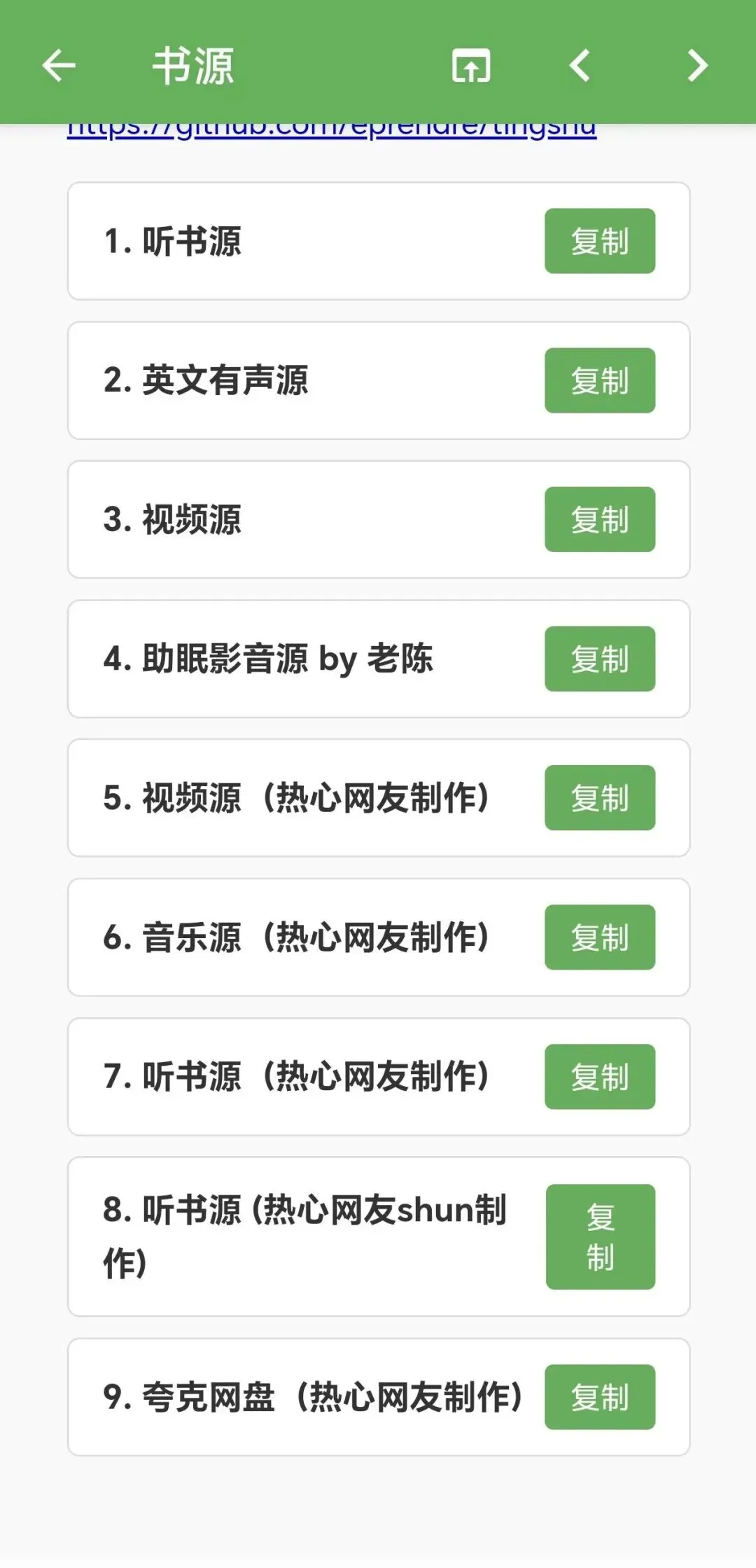 拉到「书源」下方,选择你需要的源链接,点击「复制」