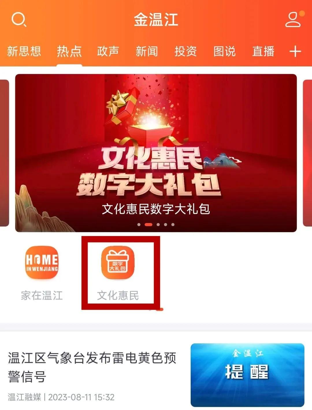 打开金温江APP