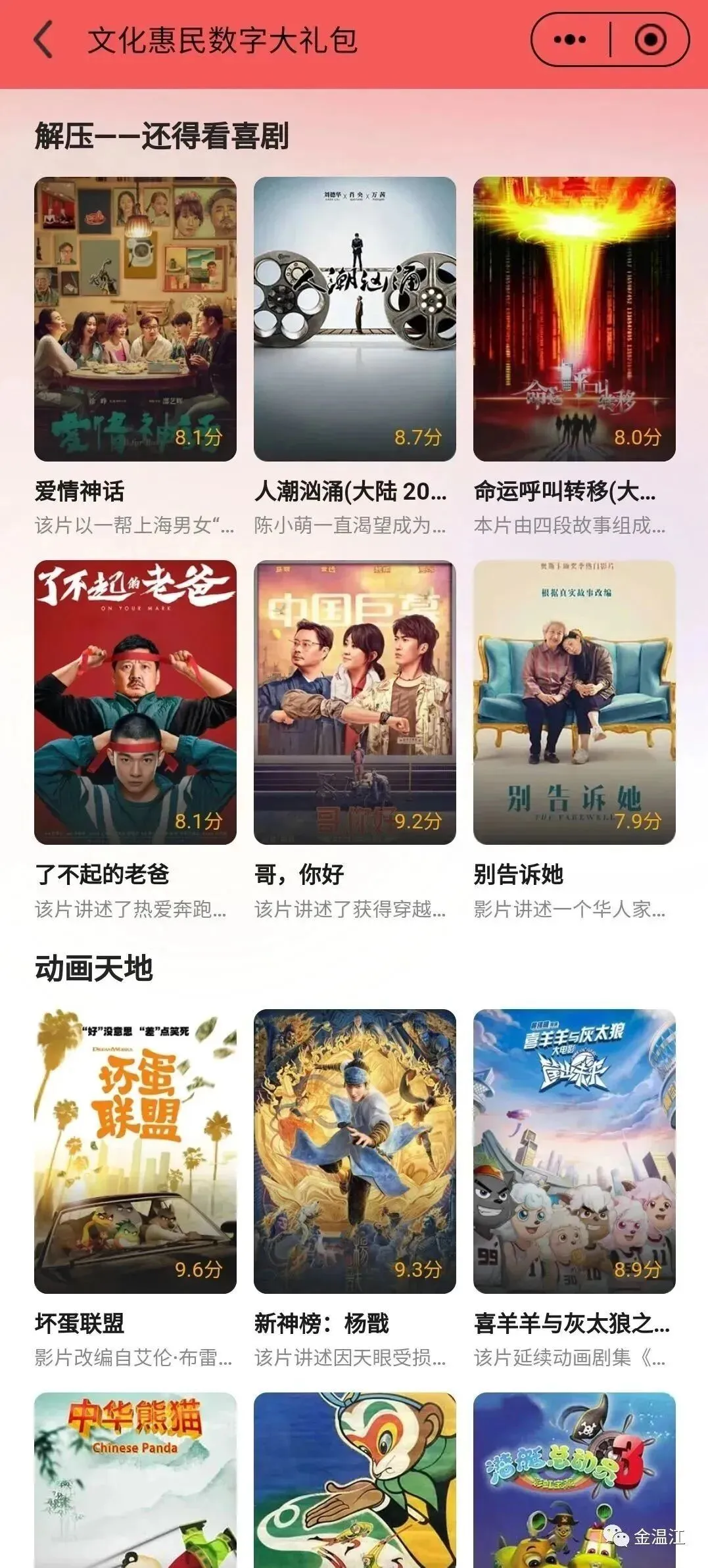 免费追剧看电影听书!金温江APP上线“文化惠民数字大礼包”→