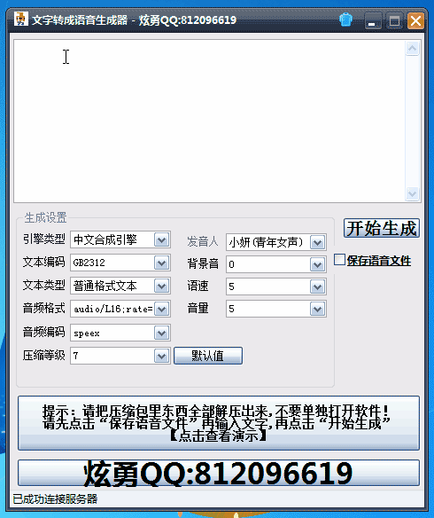 炫勇文字转成语音生成器是一款免费版的文字转换语音软件,采用了国际领先的语音合成技术,可以将文本文字换化成音频格式文件。