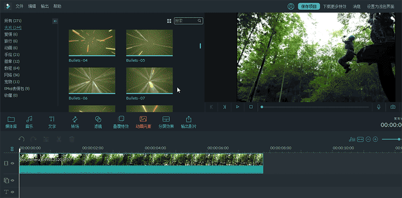 它内置了滤镜、动态效果、字幕特效、转场、BGM音乐以及各种风格的资源特效,并且每月持续更新。