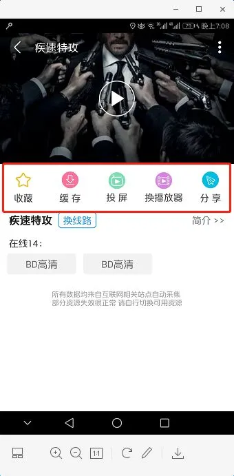 支持投屏和缓存,不过缓存需要安装qq浏览器